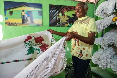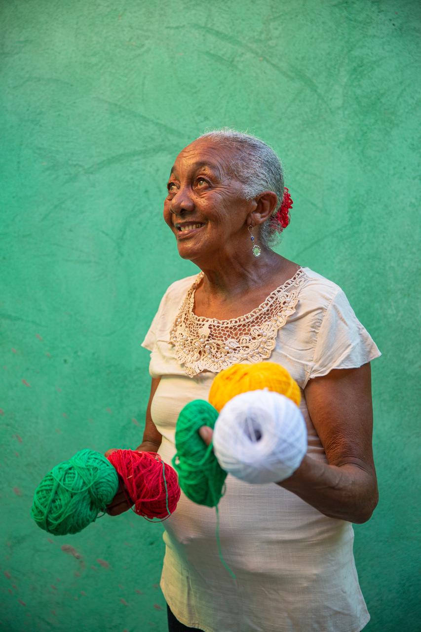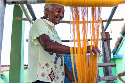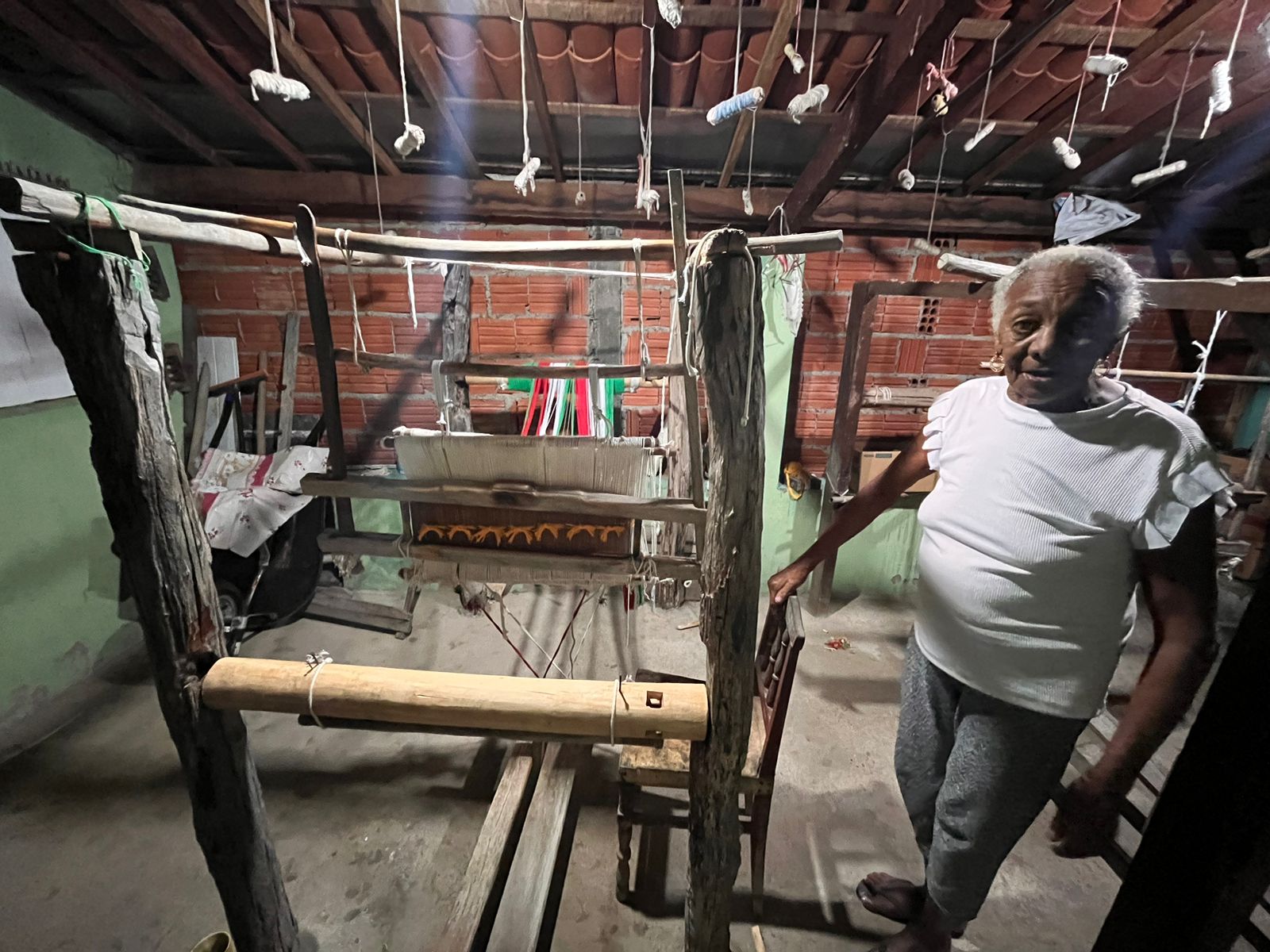 Em seu quarto, transformado em um acolhedor ateliê, Dinha exibe com orgulho suas obra. Para ela, que domina a arte da tecelagem com maestria, nenhum processo é complicado: o tempo desvendou todos os segredos e aperfeiçoou suas técnicas.