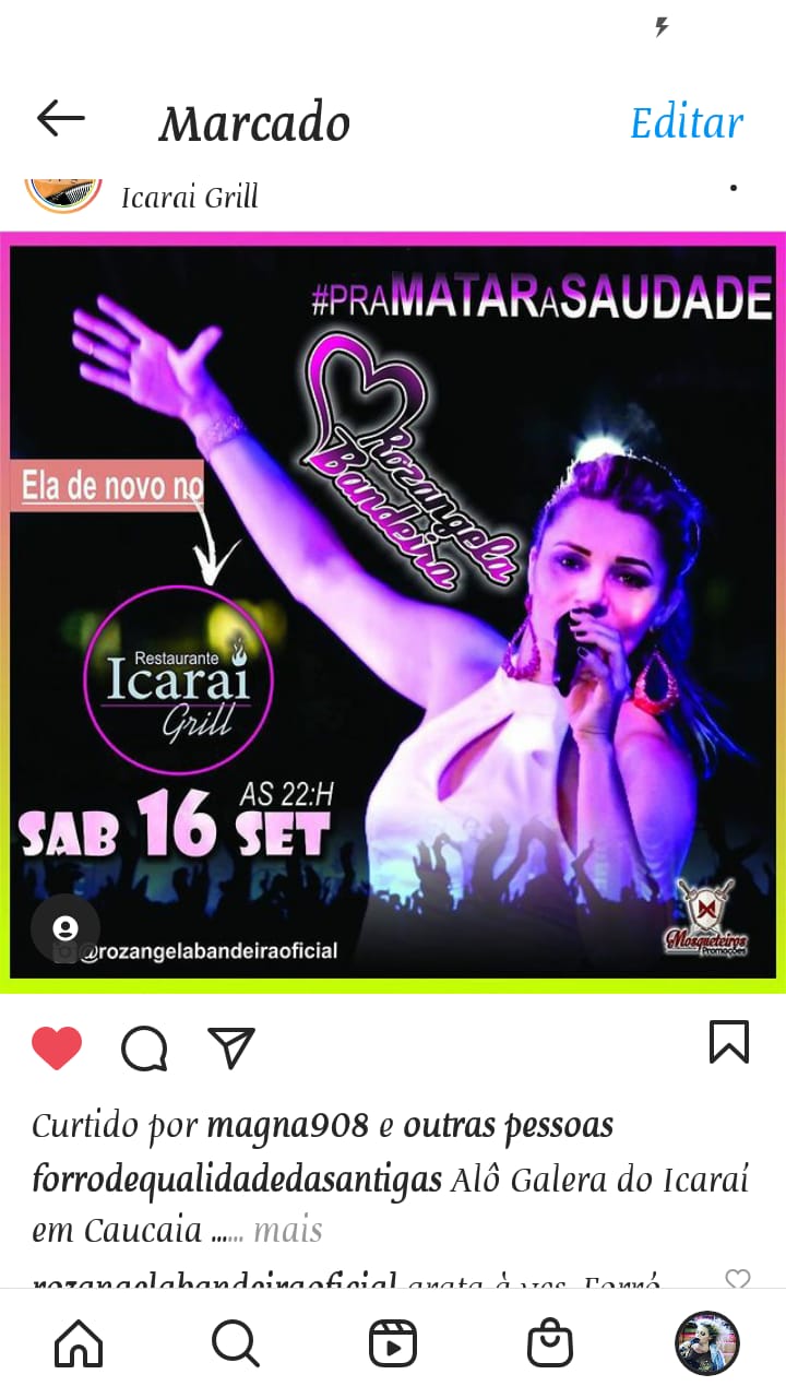 O COLETIVO ROZÂNGELA BANDEIRA E BANDA SURGIU EM 2008 DESDE QUE A VOCALISTA SAIU DA BANDA PAINEL DE CONTROLE E DECIDIU INVESTIR EM CARREIRA SOLO. COM PRODUÇÕES E APRESENTAÇÕES EM TODO TERRITÓRIO CEARENSE, COM UM REPERTÓRIO DIVERSIFICADO DE MUSICA POPULAR BRASILEIRA E REGIONAL. APRESENTANDO EM EVENTOS COORPORATIVOS, BARZINHOS, BARRACAS DE PRAIA, EVENTOS JUNINOS, FESTAS PARTICULARES, CARNAVAIS, ETC.Vídeos